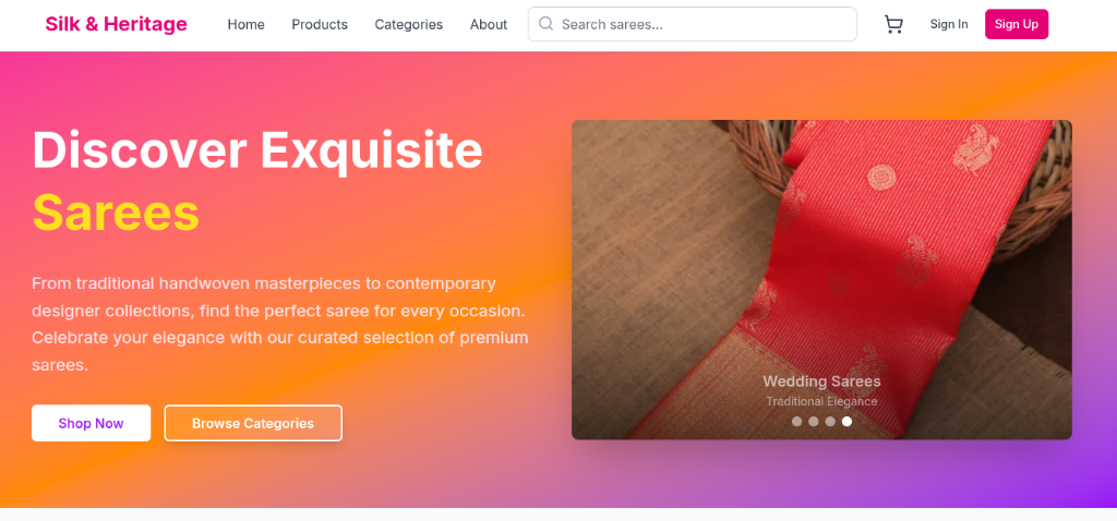 An elegant e-commerce platform dedicated to browsing and purchasing authentic sarees.